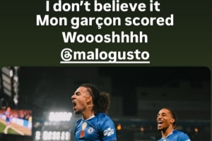 古斯托生涯处子球!科尔维尔社媒调侃:不敢信!我的男孩进球了