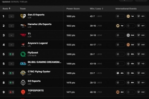 体育资讯10月24日讯 拳头官网更新全球战队实力排名: