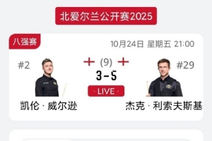 卫冕冠军威尔逊3-5利索夫斯基,止步斯诺克北爱尔兰公开赛八强
