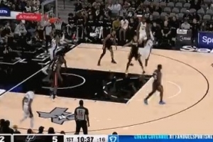 轻舒猿臂!瓦塞尔中投不中 文班亚马随便一跳轻松补篮命中!