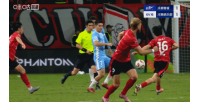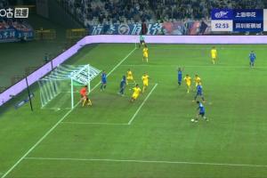 胡荷韬突入禁区时倒地,蓉城球员向裁判抗议,裁判未予理会