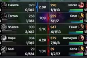 体育资讯10月31日讯 S15八强赛T1首局击败AL,Gumayusi首局使用韦鲁斯完美表现打出7-0-8的华丽战绩。