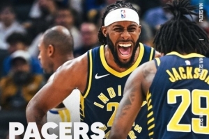逆转勇士!步行者发布赢球海报:两个杰克逊怒吼庆祝成为封面