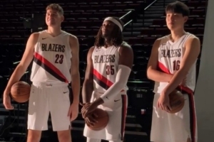 足篮联动!霍勒迪&阿夫迪亚造访女足波特兰荆棘队 阿福颠球秀球技