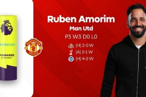 阿莫林当选英超10月最佳主教练,曼联官推发文祝贺