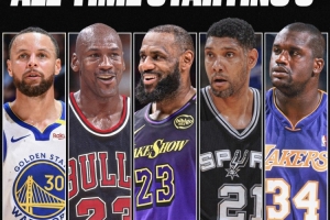 他们分别是:乔丹、詹姆斯、库里、奥尼尔、邓肯。