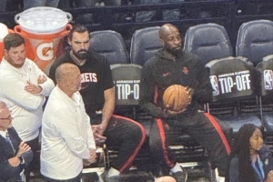 雷记:亚当斯和姐夫提前从更衣室溜出来 观看了老东家的颁奖仪式