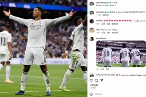 回击亚马尔!贝林厄姆传射建功,社媒晒霸气庆祝照:言语是廉价的
