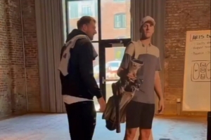 整活!东契奇一把推倒里夫斯等高纸板 两人高尔夫推杆不忘互损