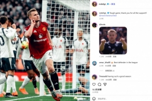 德里赫特社媒晒庆祝照:艰难的比赛,感谢曼联球迷们的支持
