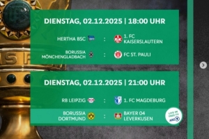 德国杯1/8决赛时间:12月3日4点药厂vs多特 4日3:45柏林联合拜仁